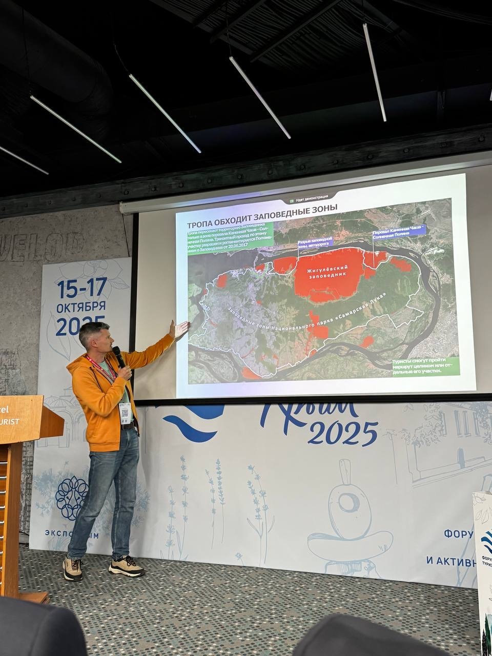 🔘Начальник отдела познавательного туризма Сергей Клушин выступил с докладом на тему эколого-просветительского туризма на особо охраняемых природных территориях. Он поделился с туристическим сообществом опытом поиска компромиссов между требованиями государства и интересами непосредственных участников туристической деятельности.
