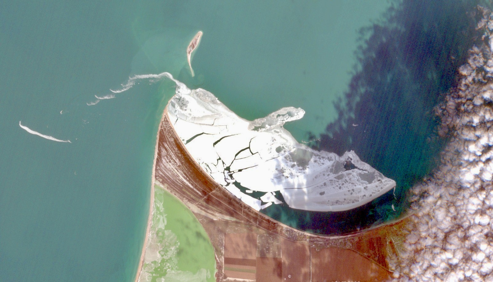 🧊На снимках, полученных со спутников, в акватории государственного природного заказника «Малое филлофорное поле» было выявлено редкое для нашего времени явление — обширное ледяное поле, прижатое к Бакальской косе.