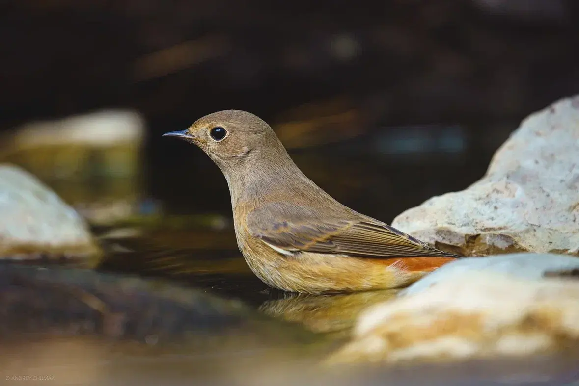🪶 Оперение у самцов контрастное: верхняя часть тела и горло чёрные, грудь рыжая или каштановая, а хвост ярко-рыжий.