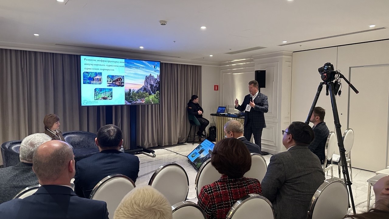 🖊️Артур Мурзаханов выступил с докладом на тему: «Баланс между сохранением биоразнообразия и развитием туризма на особо охраняемых природных территориях».